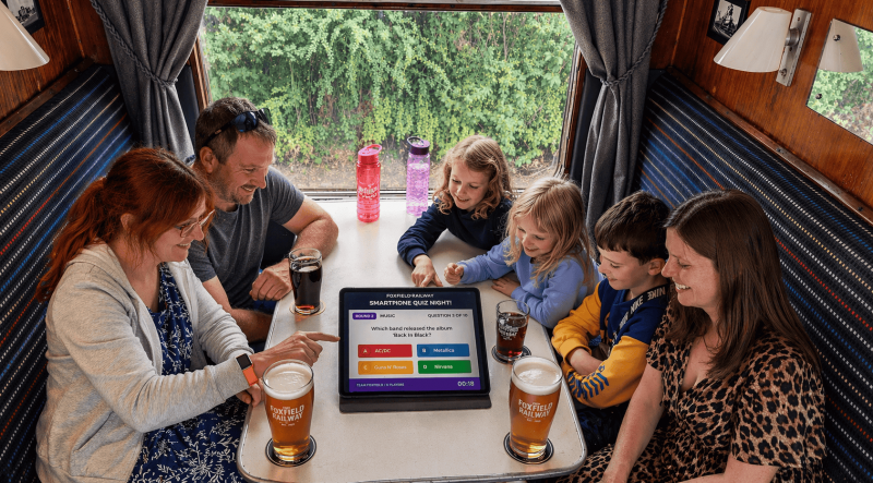 Climb aboard one of our heritage carriages and take part in a live, smartphone-based quiz as you travel along the line. No pens, no paper – just you, your team, and your phone as you compete across a range of fun, fast-paced rounds.